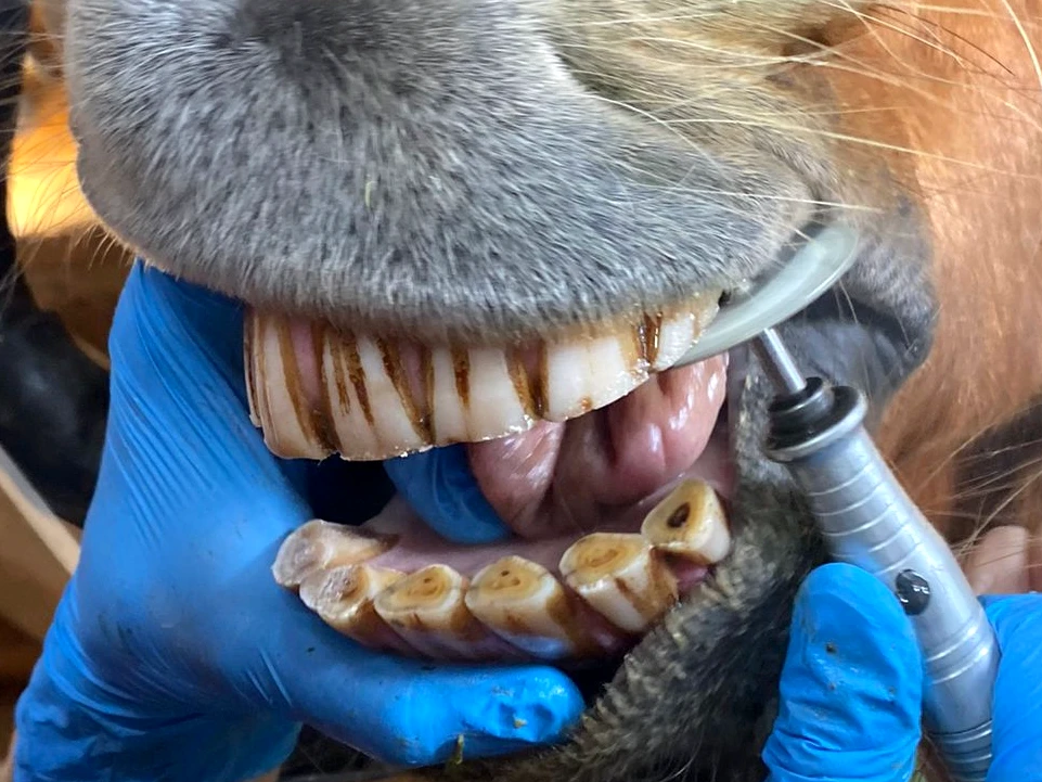 Entfernung scharfer Kanten und Korrektur von Zahnfehlstellungen beim Pferd.