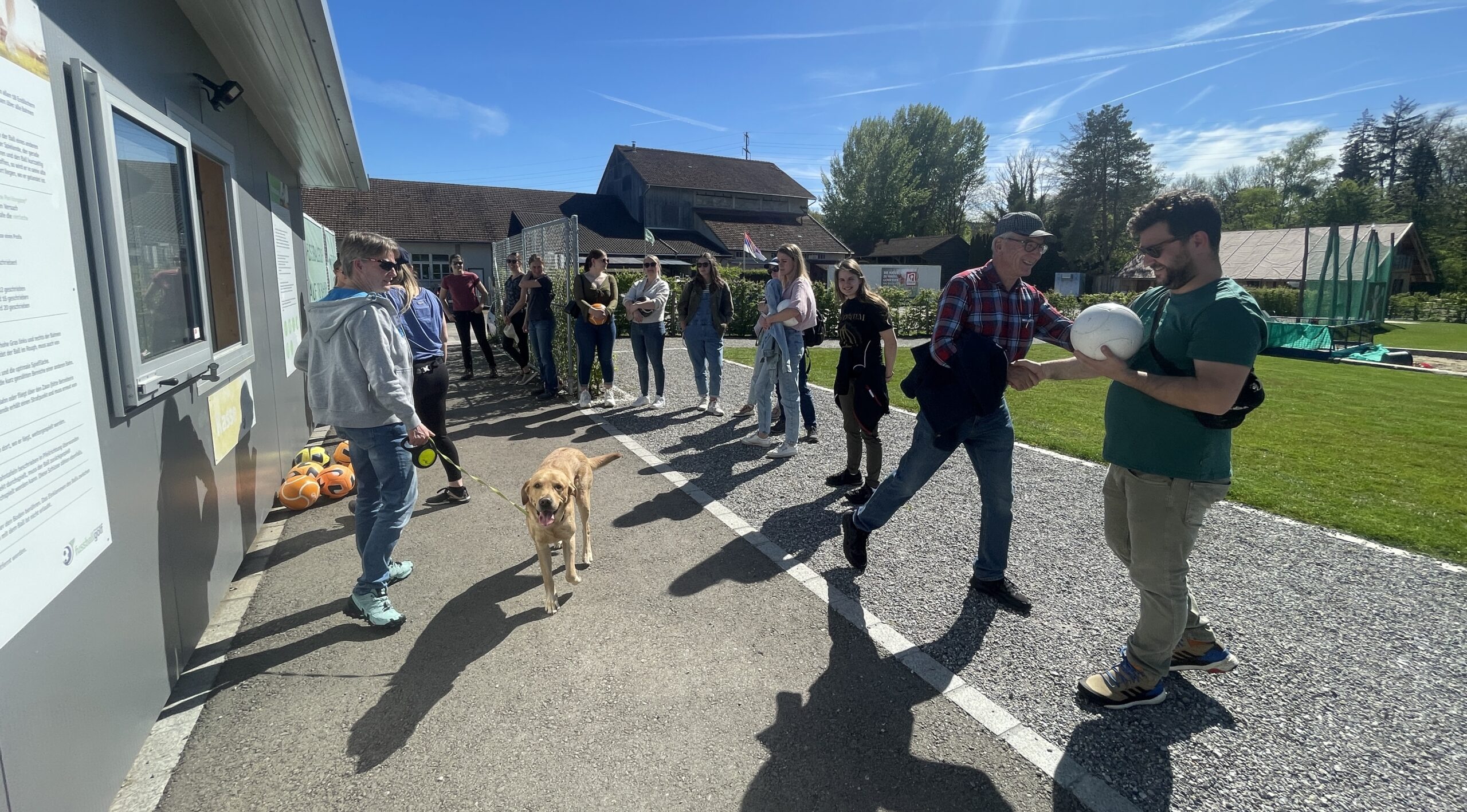 Fussballgolf mit Hund und bestem Wetter